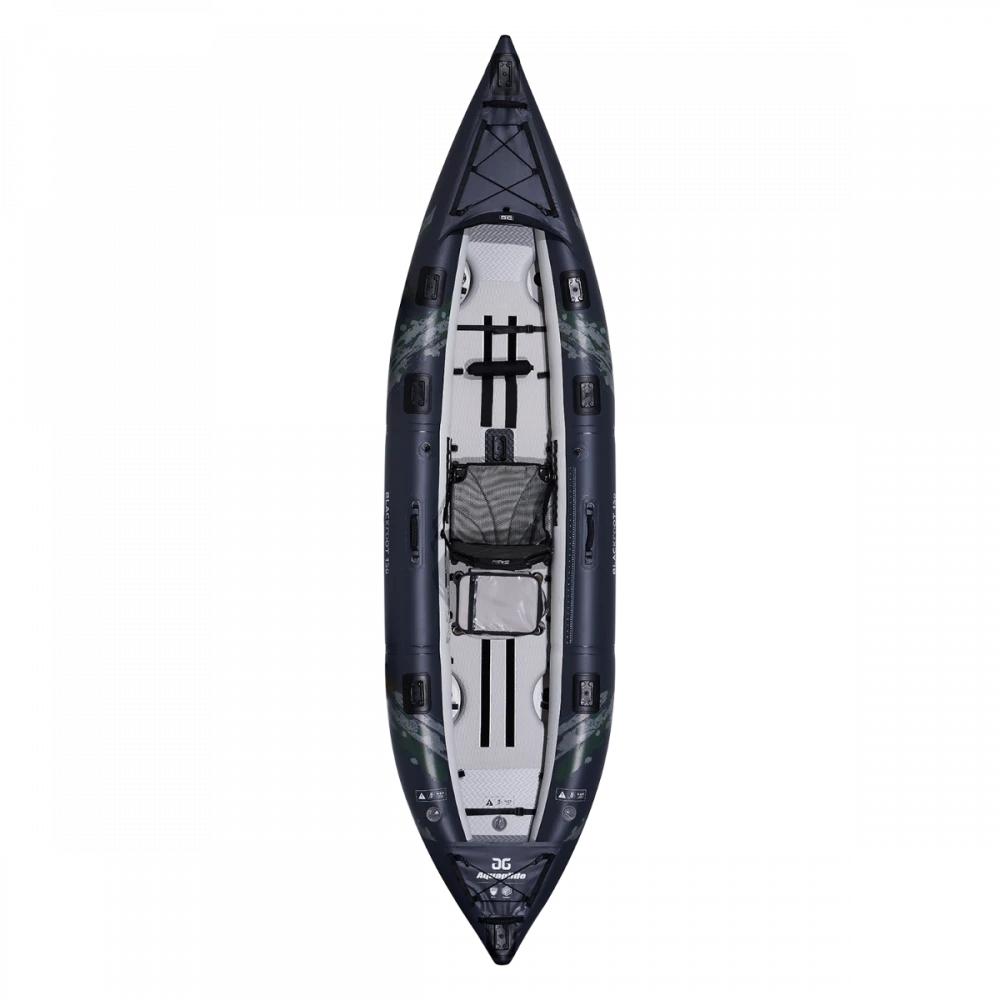 The easy Pack–RiteAccess system allows you to quickly and easily deflate and store the kayak. The included directional skeg helps you navigate chosen destinations; all other paddles and accessories can be conveniently stored in the deck–mounted bungees and pocket. The Blackfoot includes a carrying bag and repair kit.