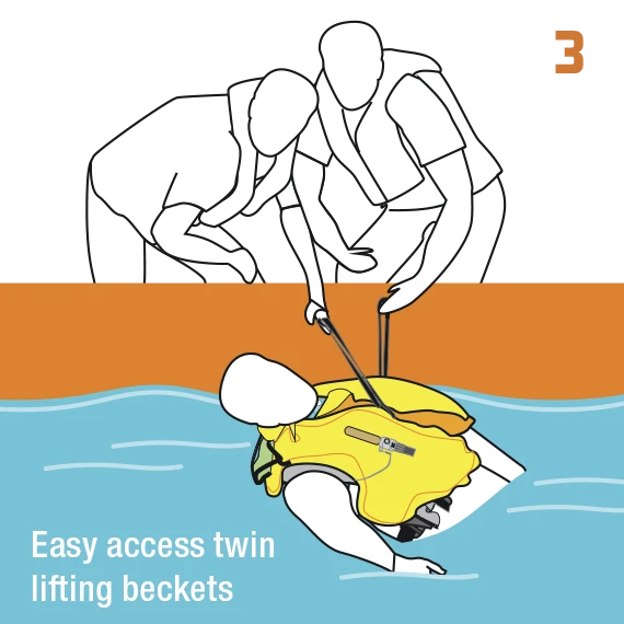 - Dual buckle system and side waist adjusters, uniquely designed to ensure swift donning – essential if the wind gets up and it’s all hands on deck