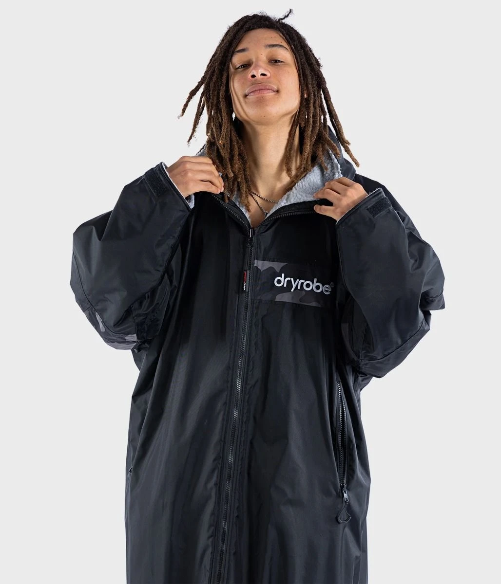 Dryrobe Advance Long Sleeve Remix Adult Changing Robe in Black/Grey/Camo