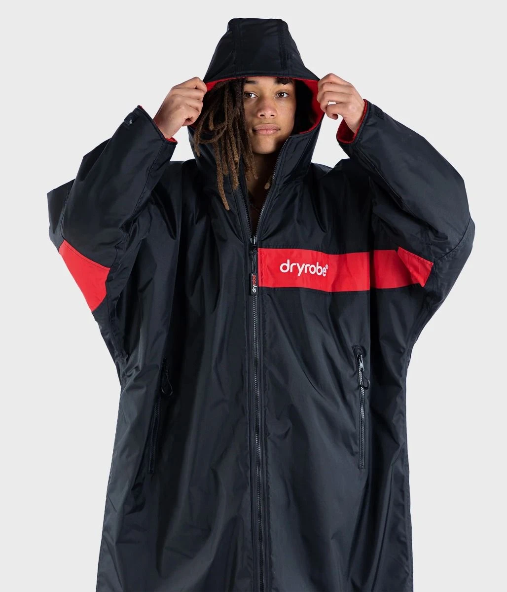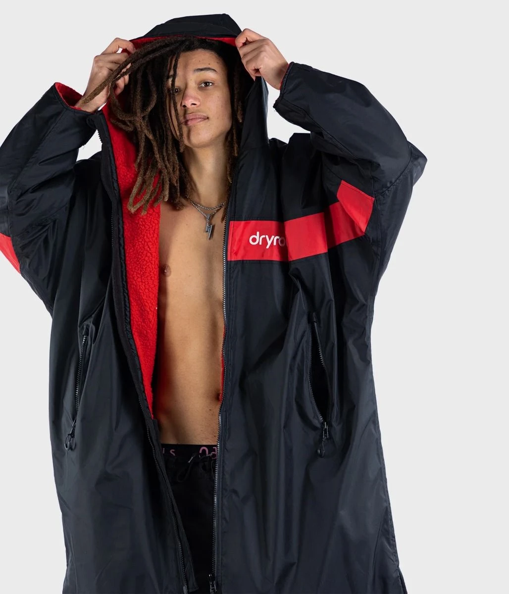Dryrobe Advance Long Sleeve Remix Adult Changing Robe in Black/Red