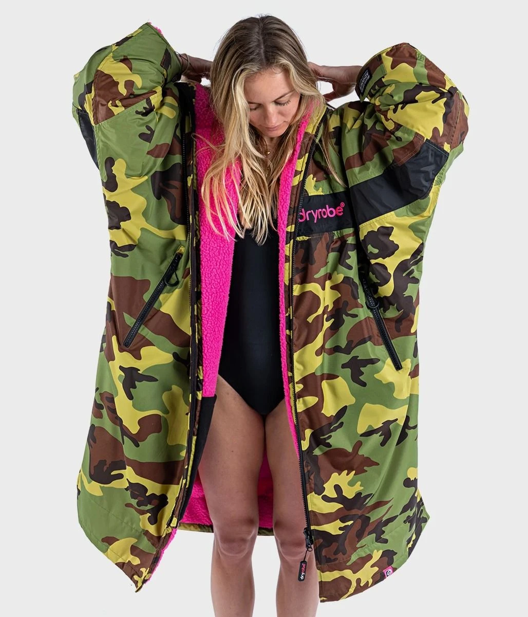 Dryrobe Advance Long Sleeve Remix Adult Changing Robe in Camo/Pink/Black