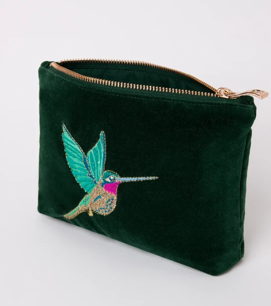 Elizabeth Scarlett Hummingbird Velvet Mini Pouch in Rainforest Green