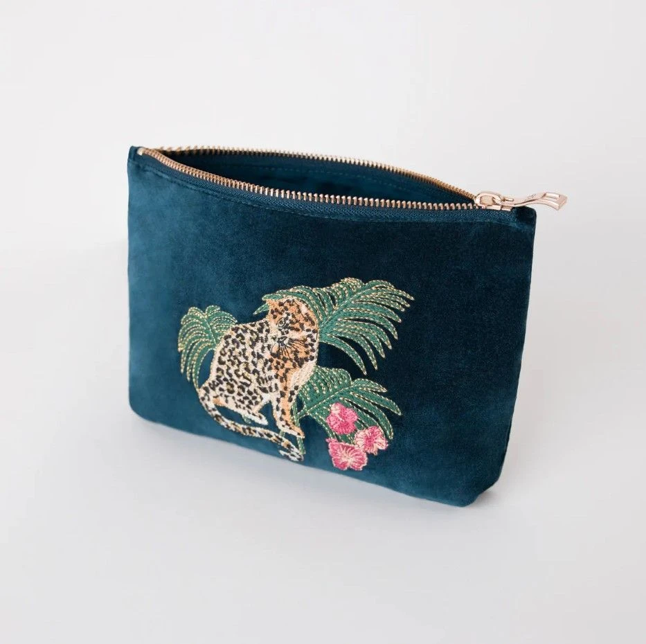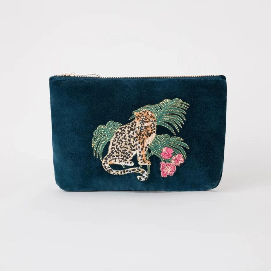 ELIZABETH SCARLETT JUNGLE JAGUAR MINI POUCH IN INK BLUE