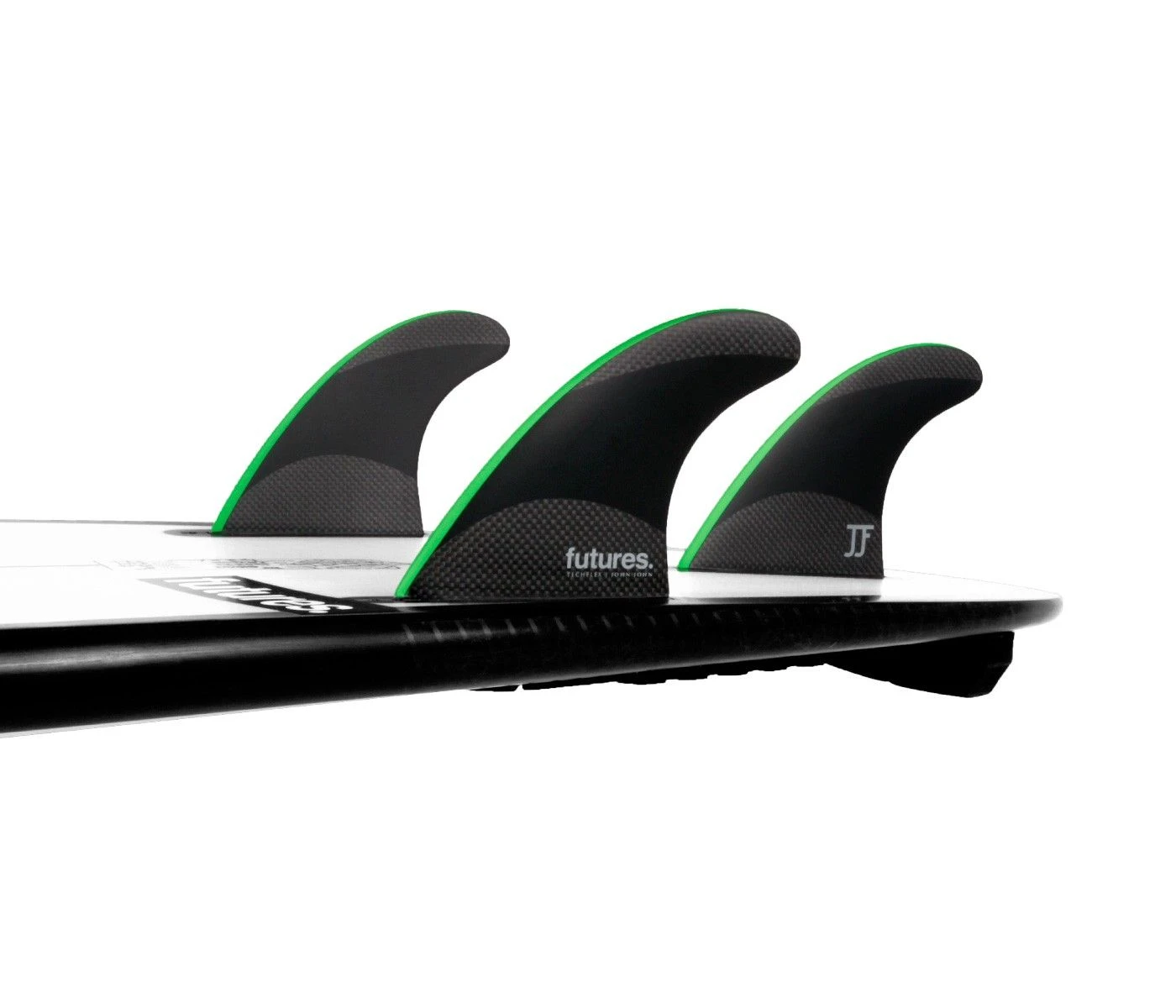 The John John (M) Techflex signature fin is a medium sized Speed Control fin with a Ride Number of 4.0. It was designed by JJF to be a larger, more drivey version of the F4 template, with additional base and rake. The Techflex construction and flat foil give this fin a stable feel, making it ideal for controlling speed in more powerful waves. For John John, this is his weapon of choice in all conditions.