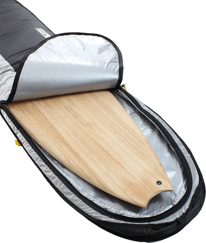 Global board bags are constructed to the very highest specification with all the key features in place to ensure your precious surfboard arrives in one piece at the end of its journey, whether that be a long haul or a short trip to your local break. The System 10 series are all constructed from a combination of durable Rip Stop Polyester and super tough, reflective Rip Stop Tarpaulin on the underside. The silver finish on the underside of the boardbag is essential, reflecting sunlight and heat, thereby protecting your surfboard from delamination and also preventing your wax from melting.