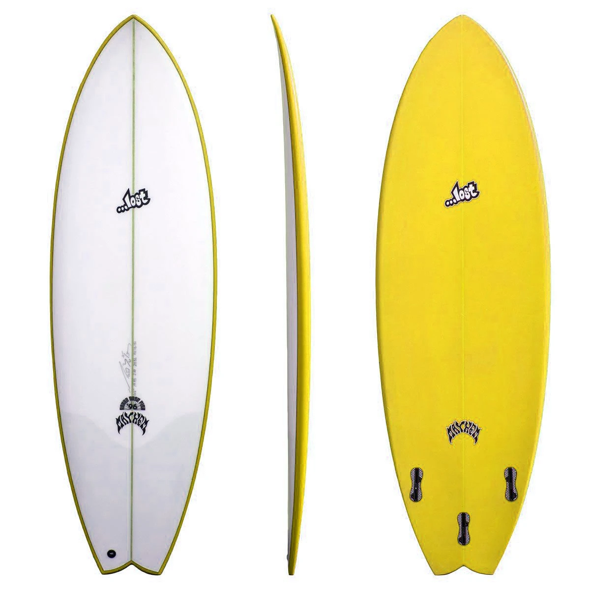 Lost RNF 96 Fish Surfboard in White / Mustard Yellow