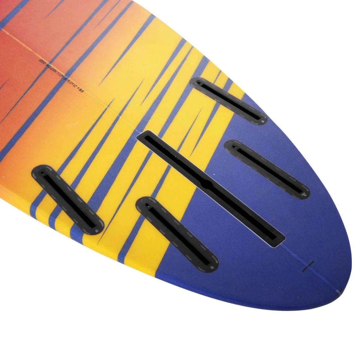 The PU Magnet 7ft 2 Funboard is a great platform for quick progression. For riders wanting more grip from their board, or simply looking for a different setup from their fin clusters, there are many combinations available, depending on the conditions and skill level of the rider. The supplied centre fin uses a standard surf 10 box, and the four side fin boxes are Futures® compatible.