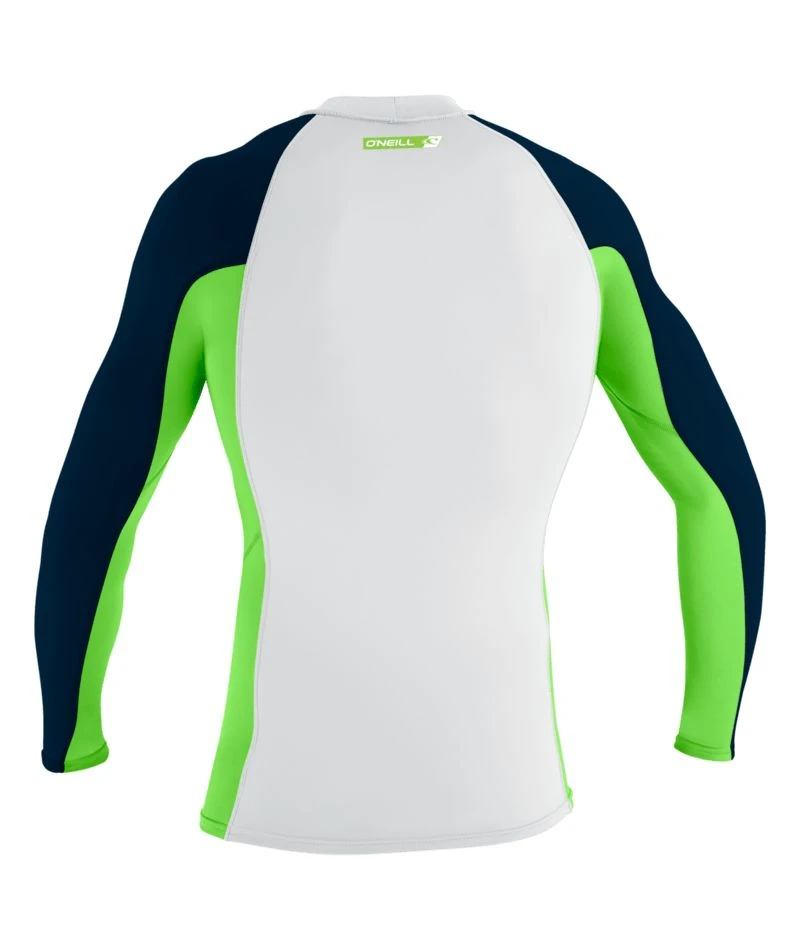 O’Neill Premium Skins Long Sleeve Men’s Rash Guard Top in White/Dayglo/Abyss
