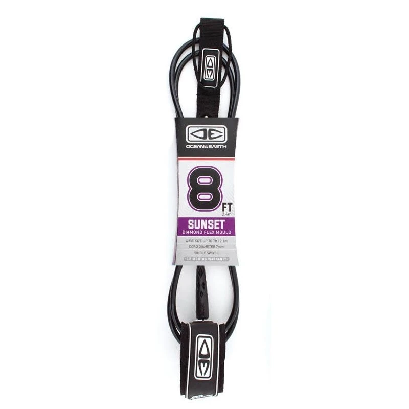 OCEAN & EARTH 8FT SUNSET SURFBOARD LEASH – BLACK