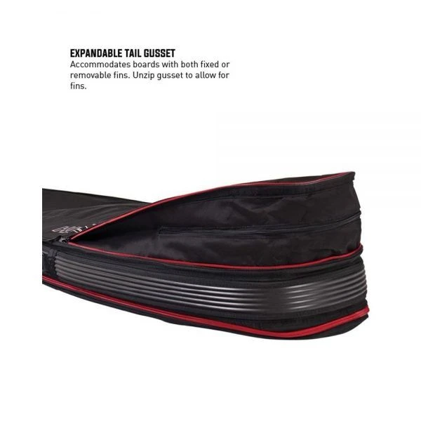 Accommodates boards with both fixed or removable fins. Unzip gusset to allow for fins.