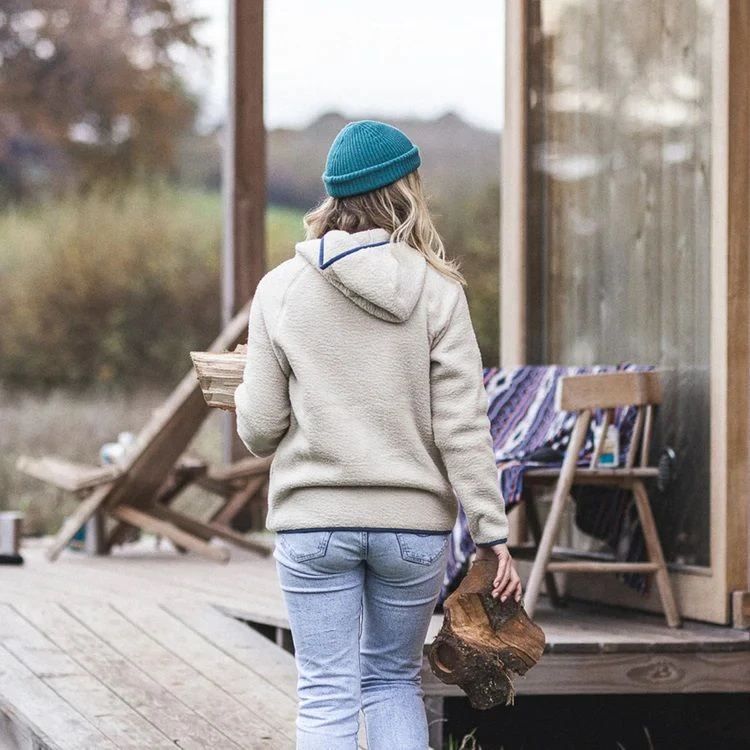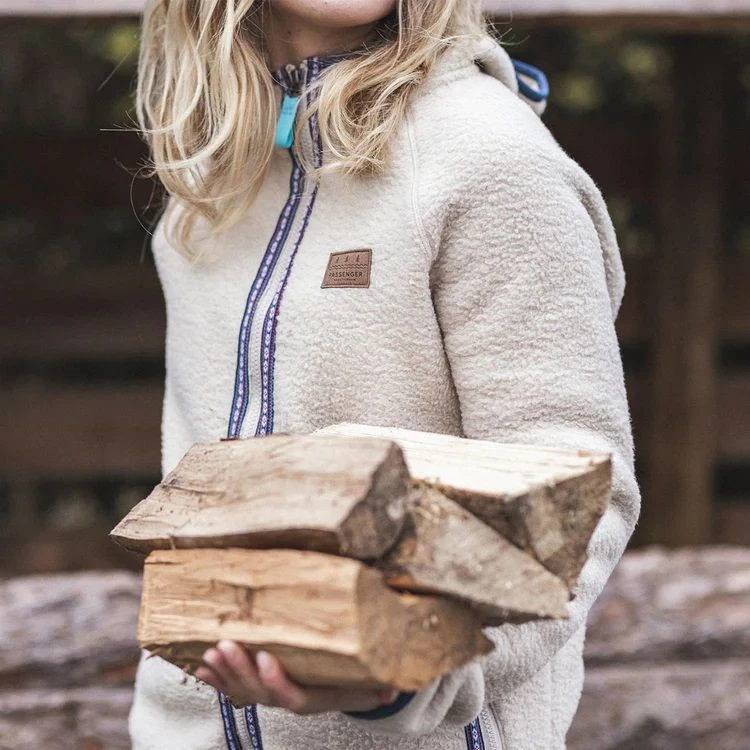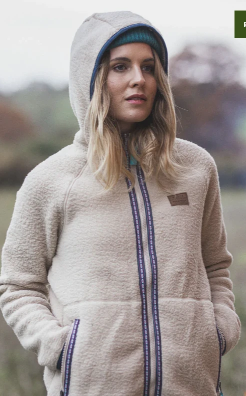 Passenger Lake Ladies Full Zip Recycled Hooded Sherpa Fleece in Oatmeal