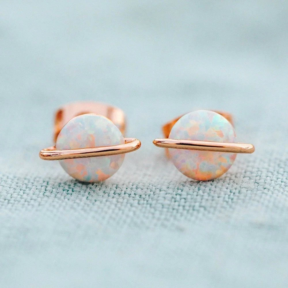 Pura Vida Opal Saturn Stud Earrings in Rose Gold/White