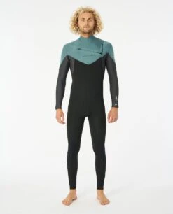 Rip Curl Dawn Patrol Perf 4/3mm Chest Zip Wetsuit in Muted Green