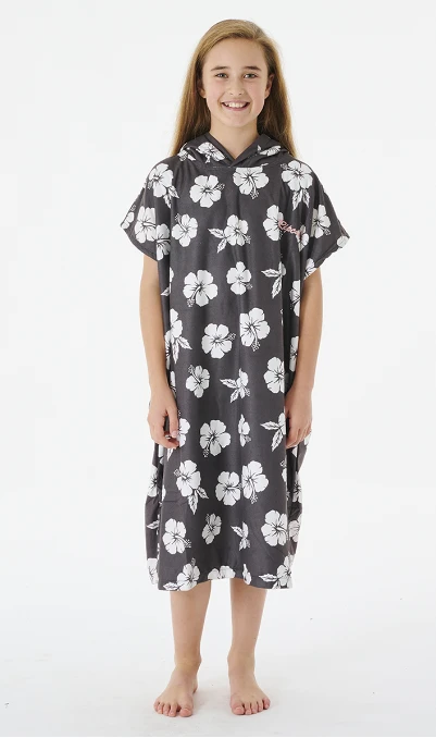 Rip Curl Desert Waves Grom Girls Hooded Towel Poncho in Black/White
