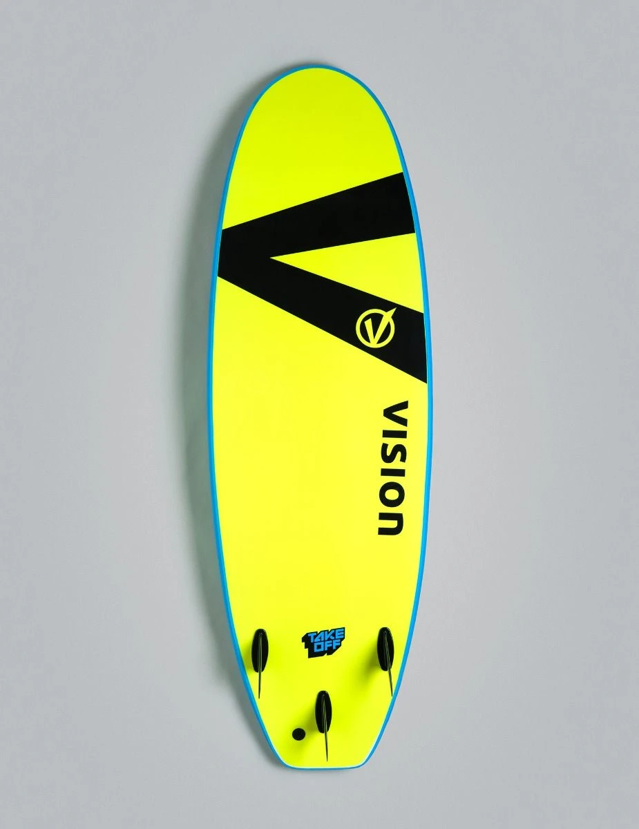 The Vision TakeOff 7ft W foam surfboard with its ramped-up core gives dramatically increased volume and stiffness for greater stability and paddle power in more challenging waves. The enhanced IXPE deck undergoes an advanced crosslinking process which gives the TakeOff a tougher, more premium feel as well as enhancing shock absorption. A thicker, more durable slick material and triple stringers in the 9-foot model add even more strength and longevity.